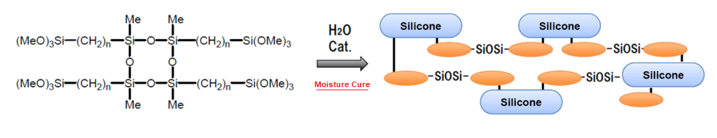 * Relaxation of steric hindrance by long-linked chains improves reactivity of hydrolytic condensation of alkoxysilyl groups and improves curability